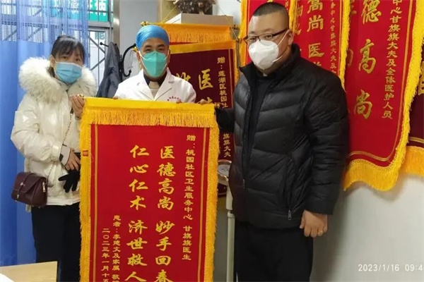 1月16日,李師傅的家屬來到通用技術(shù)環(huán)球醫(yī)療西電集團醫(yī)院桃園社區(qū)衛(wèi)生服務(wù)中心送上錦旗,錦旗上寫著“醫(yī)德高尚 妙手回春 仁心仁術(shù) 濟世救人 ”的字樣,由衷地感謝住院部全體醫(yī)護人員在他住院期間精心治療和護理?! ?022年12月31日,李師傅因感染新冠入院治療...