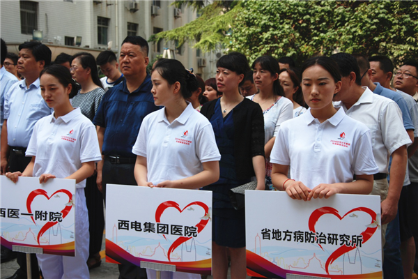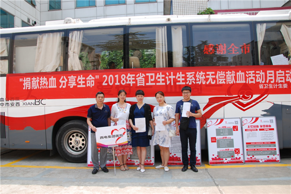 為弘揚(yáng)衛(wèi)生計(jì)生系統(tǒng)“敬佑生命、救死扶傷、甘于奉獻(xiàn)、大愛無疆”的精神,捐獻(xiàn)可以再生的血液、拯救不可重來的生命,同時(shí),履行《中華人民共和國獻(xiàn)血法》的要求,8月3日上午,由省衛(wèi)生計(jì)生委主辦、省血液中心承辦的“2018年衛(wèi)生計(jì)生系統(tǒng)無償獻(xiàn)血活動(dòng)月啟動(dòng)儀式”在省衛(wèi)生計(jì)生委機(jī)關(guān)大院舉行,由西電集團(tuán)醫(yī)院副院長吳艷梅帶隊(duì),輸血科張炳軍等一行作為代表參加了此次啟動(dòng)儀式。