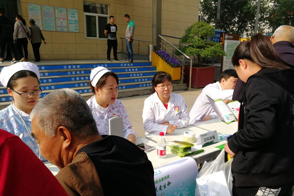 本次活動以專家義診和科學(xué)抗癌科普展的形式開展,活動現(xiàn)場,腫瘤內(nèi)科專家張文秀副主任醫(yī)師、普外科專家黃永凱副主任醫(yī)師、婦科專家王麗副主任醫(yī)師、胸外科專家張衛(wèi)寧副主任醫(yī)師、呼吸血液腫瘤科張引亮主治醫(yī)師等為前來咨詢的患者免費義診,提供科學(xué)防癌咨詢,答疑解惑。婦科護士長鹿怡、呼吸血液腫瘤科護士長王麗芳、護士李小玉、普外科護士何瑾等為患者量血壓、發(fā)放防癌科普資料,講解常見致癌危險因素等相關(guān)知識。